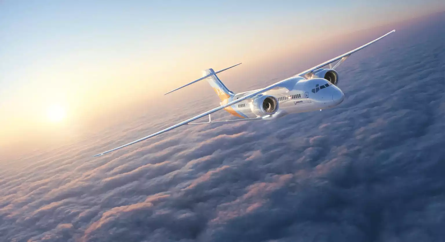 Un nouveau rendu du X-66 réalisé par Boeing montre les ailes à fort allongement de l'avion, renforcées par l'ajout de haubans, connues sous le nom outre-Atlantique de "Transonic Truss-Braced Wing". Associée à d'autres avancées en matière de systèmes de propulsion, de matériaux et d'architecture des systèmes, cette configuration pourrait permettre de réduire de 30 % la consommation de carburant et les émissions par rapport aux meilleurs avions actuels.