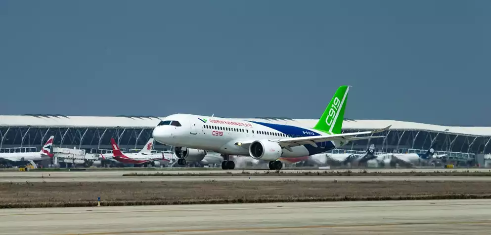 Le premier client, China Eastern Airlines, prendra livraison de son premier Comac C919 en décembre 2022 et devrait assurer des vols de passagers à partir du premier semestre 2023. Les analystes de Jefferies ont déclaré le mois dernier qu'ils s'attendaient à ce que COMAC atteigne une production d'environ 25 C919 par an d'ici 2030, ce qui est bien inférieur aux taux de production mensuels actuels des avions à fuselage étroit d'Airbus et de Boeing. Bien que le C919 soit assemblé en Chine, il fait largement appel à des composants occidentaux, tels que les moteurs et l'avionique, provenant de sociétés telles que GE, Safran et Honeywell International.