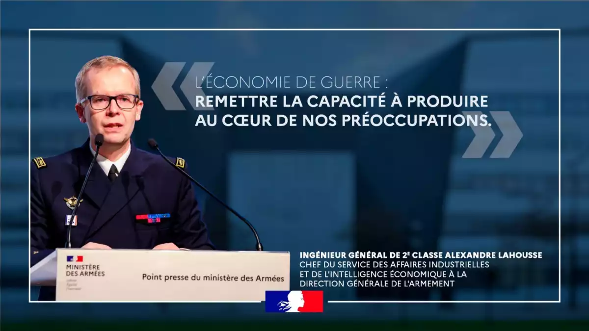A l’occasion du point presse hebdomadaire du ministère des Armées, le chef du service des affaires industrielles et de l’intelligence économique de la DGA a présenté un premier bilan des actions menées en faveur de l’économie de guerre. Alexandre Lahousse a notamment dévoilé les cinq chantiers en cours pour accélérer la cadence de production.
