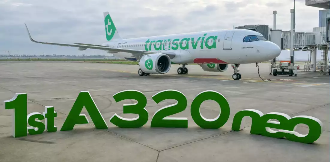 "F-GNEO" : c'est l'immatriculation très symbolique que Transavia a choisi pour son tout premier Airbus A320neo qui lui a été livré le 10janvier, en partenariat avec le loueur irlandais Avolon. Son premier vol commercial est prévu le 15janvier 2024, entre Paris-Orly et Porto (Portugal), ce qui est aussi un clin d'oeil puisque la ville portugaise était la toute première destination