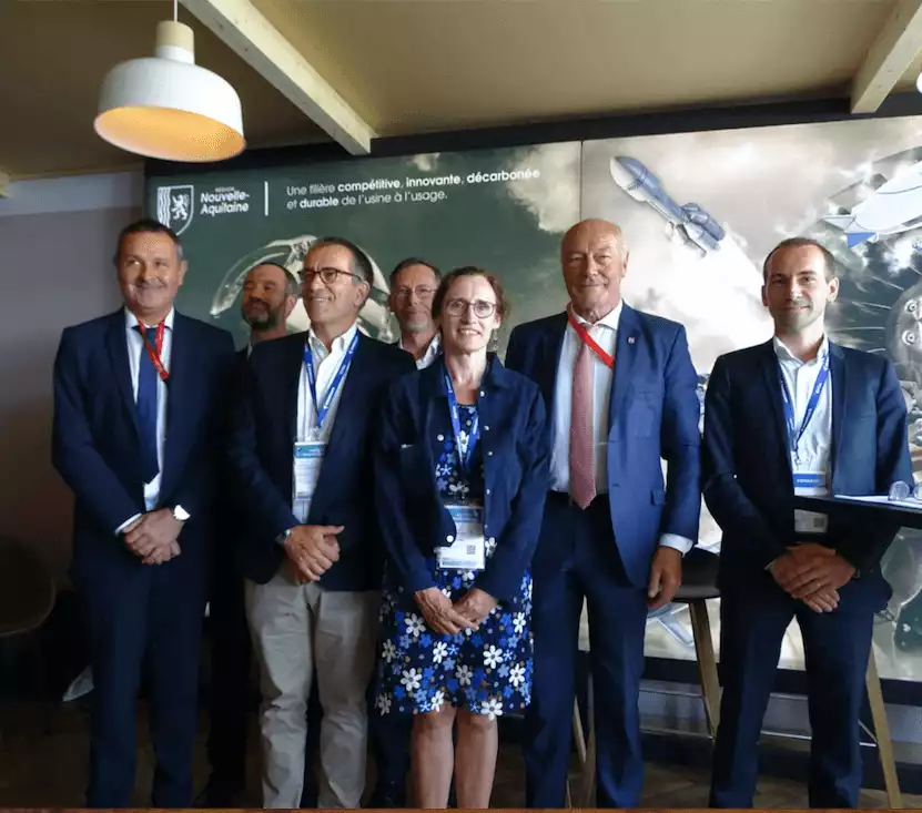 Lors de ses annonces faites en amont du Salon du Bourget 2023, le vendredi 16 juin, le président de la République Emmanuel Macron avait déjà entre-dévoilé l'annonce de la future implantation de l'usine de production de biocarburants BioTJet dans le bassin de Lacq (Pyrénées-Atlantiques), pour une mise en service en 2028. Il y avait donc affluence au chalet de la