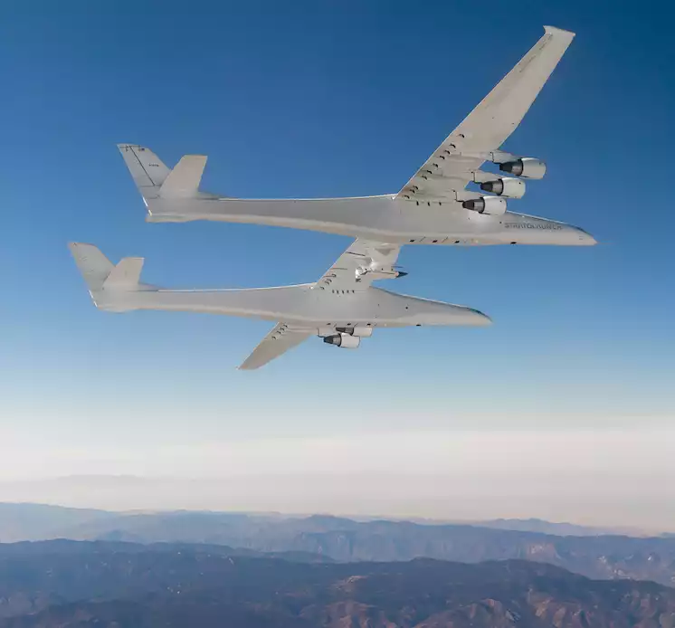 Et de deux ! C'est le 13 Janvier 2023 que le Roc de Stratolaunch est resté en l'air pendant six heures au-dessus du désert californien de Mojave, ce qui représente jusqu'alors le plus long vol réalisé par l'appareil héxaréacteur. Plus exactement, c'était le neuvième vol d'essai du Roc (le porteur) et du second au cours